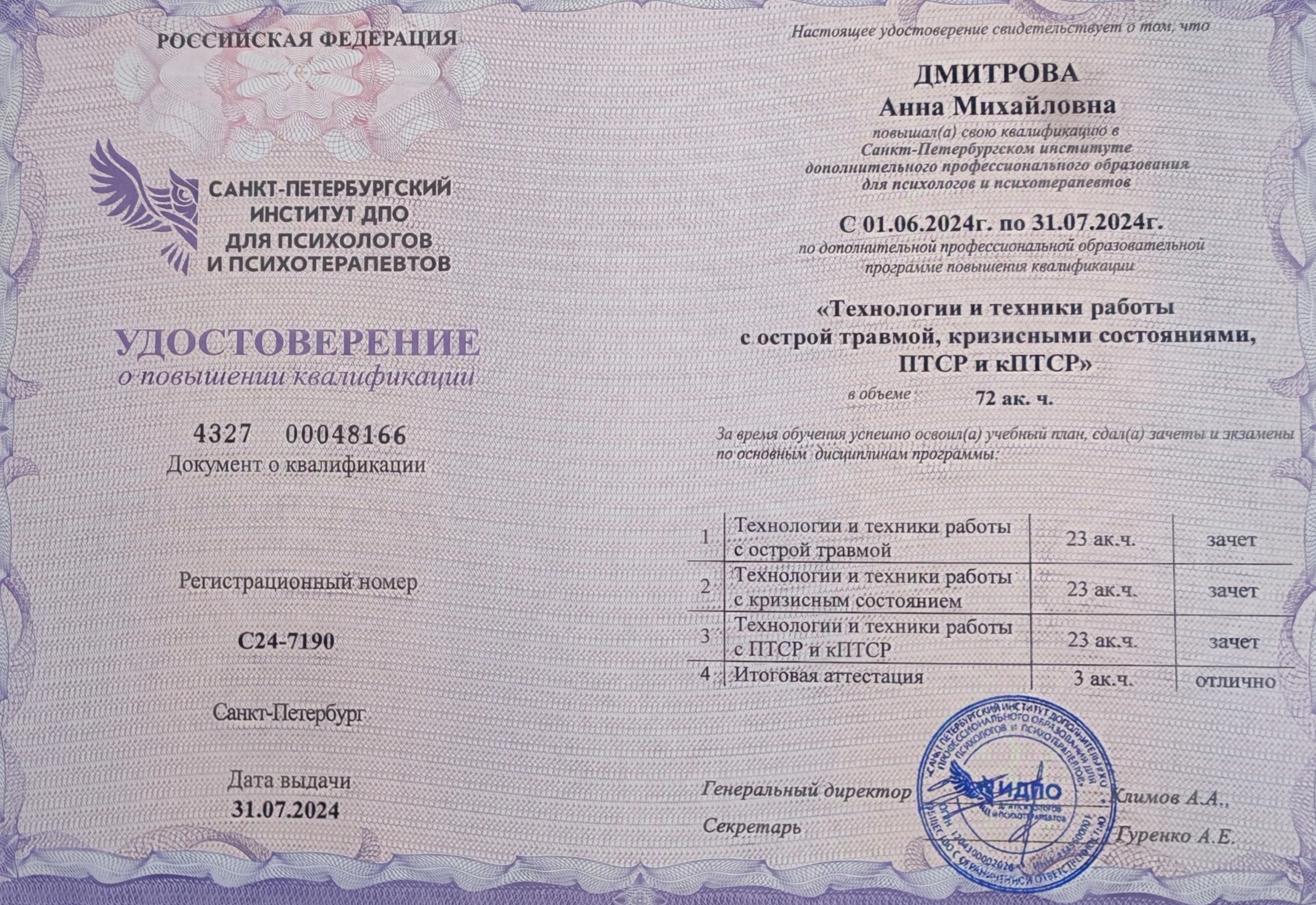 Психолог. Консультирую онлайн. Работаю в АСТ (Терапия принятием и ответственностью). Помогаю разобраться в отношениях с собой, с другими людьми и с окружающим миром. Мои консультации — островок безопасности, где можно быть собой и получать поддержку. Внимательна и бережна к каждому клиенту вне зависимости от пола, расы, гендера и пр. Мне важно быть этичной и эффективной. Постоянно повышаю свою квалификацию. Буду рада помочь вам прийти к желаемым изменениям! Работаю только с лицами старше 18 лет.