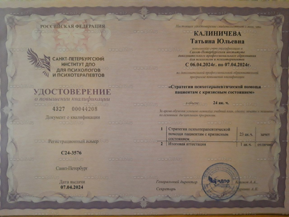 | Санкт-Петербургский институт ДПО для психологов и психотерапевтов | 2024 |